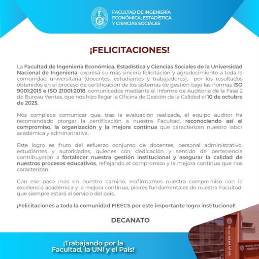 En la Facultad de Ingeniería Económica, Estadística y Ciencias Sociales de la UNI hemos implementado un Sistema Integrado de Gestión